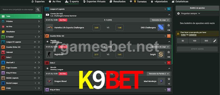 O K9Bet oferece uma grande seleção de opções de apostas em e-sports com probabilidades competitivas